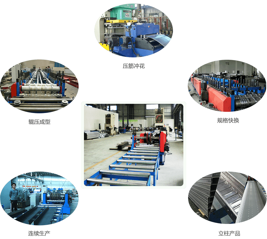 普通槽式橋架:開卷→引料、整平→平板沖孔→平板切斷→輥壓成型→成品引料→托板出料