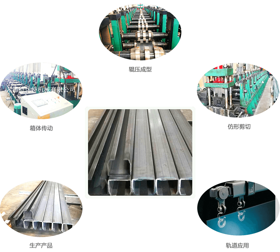 開卷—導向進料—輥壓成型—定尺切斷—托板出料